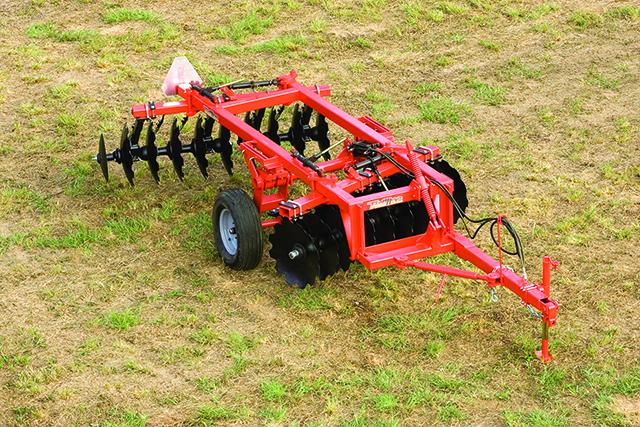 Tufline’s 38 Series Offset Disc Harrows are designed for 50 to 80 horsepower tractors. The mainframe is constructed of heavy duty 4” square tube and 5” x 3” square tube gang beams. The gangs have a 1 1/2” RC square gang axles with triple sealed ball bearings. All units have a front to rear spring loaded leveling system and a tongue and yoke system for side draft control. Gang angle is adjustable and the gangs are available with tubular or shock flex gang hangers. 22” or 24” notched blades are standard with plain blades optional. Safety chain and mounted tongue jack are standard. Hydraulic cylinder, hoses, and tires are also standard equipment.
