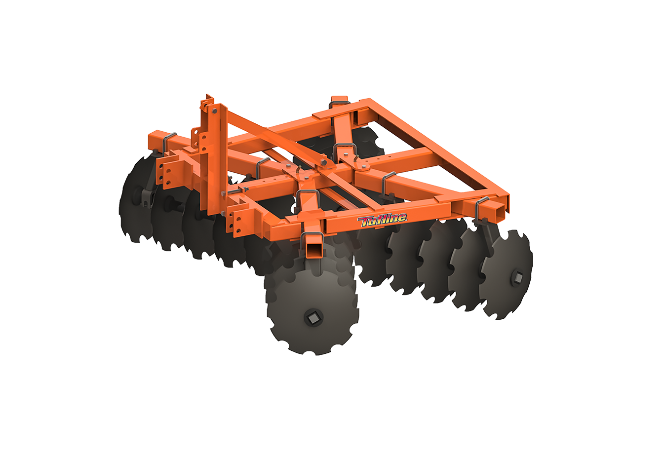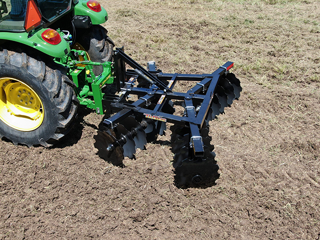 Designed for 50 to 80 horsepower tractors, these units are built of 4” high yield square tube and feature triple sealed ball bearings. The T4X series is equipped with a heavy duty Category 2 hitch that is quick hitch compatible. The gangs have 1 1/8” square high strength axles with heavy tube gang hangers. Each unit is equipped with adjustable gang angles. The units have 7 1/2”, 9” or combination blade spacing with 20” or 22” notched blades standard. Plain blades optional.